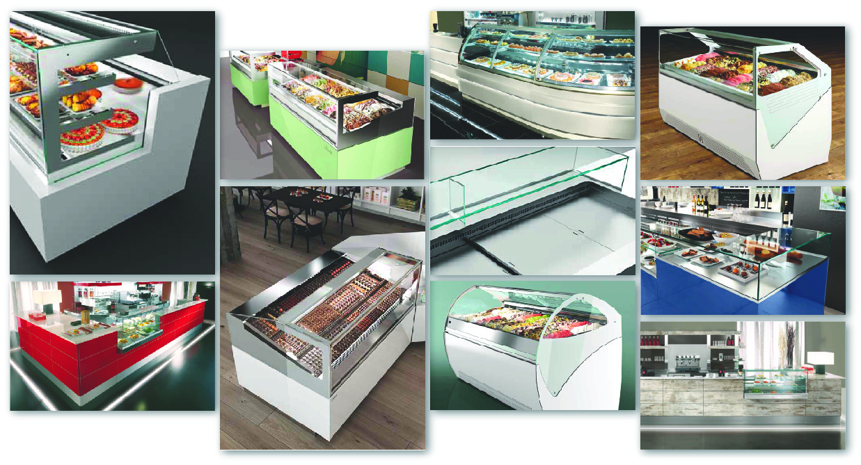 De Blasi is an Italian company that has been making display fridges and bar furniture for pastry and ice cream shops for more than 50 years, and its design shows the Italian aesthetics from the late 70s and 80s with its vibrant solid colors and sober shapes.