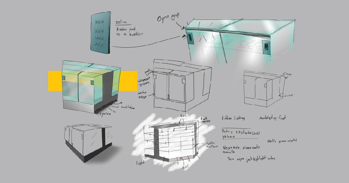 The project was given as part of the vinculation from my university (UANL in Monterrey, Mexico) and the COSMOB center in Italy. The premise was to work on a concept for an Italian fridge brand, De Blasi.